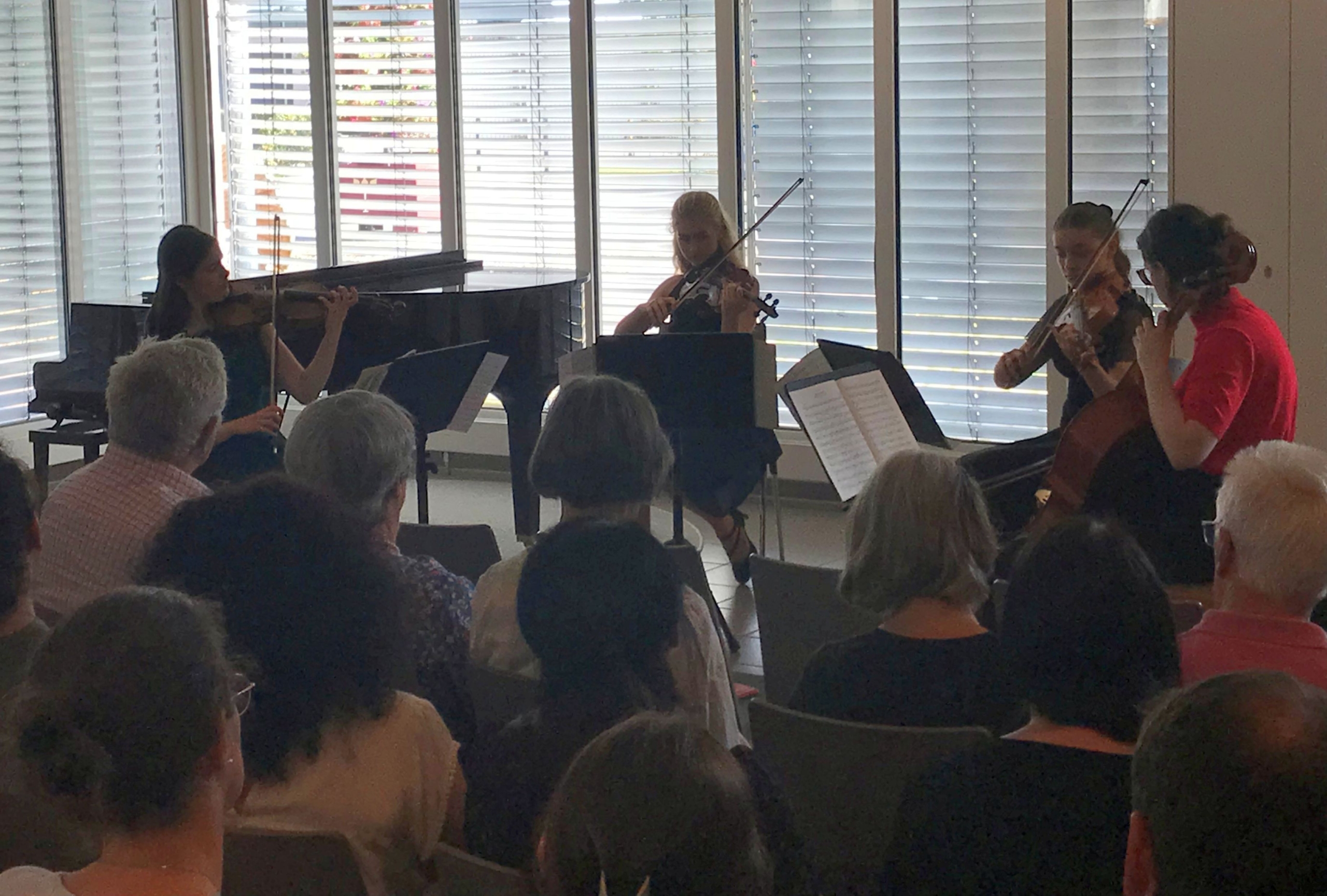 Es spielen Schüler*innen der Klavier- und Streicherklassen von Johannes Hombergen (Klavier), Isabella Kubiak (Geige und Bratsche) und Thomas Weihrauch (Violoncello)